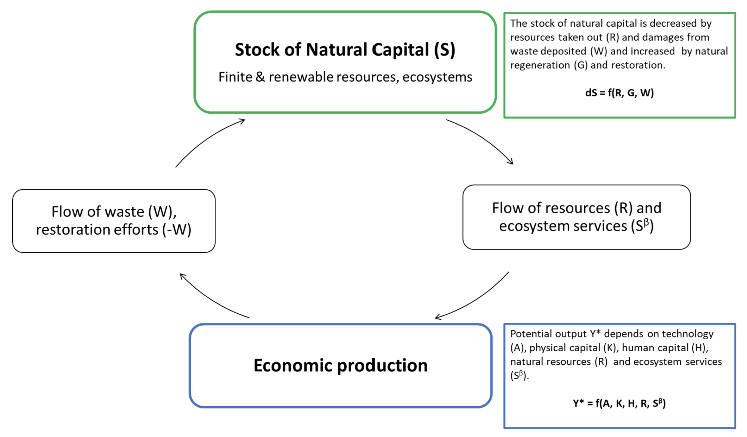 Figure 1 Feedback loops between natural capital and the economic production system