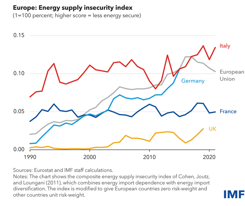 Strikingly, our analysis reveals that Europe’s energy security deteriorated in the decades before Russia’s invasion of Ukraine, as countries relied increasingly on imports from ever fewer suppliers.